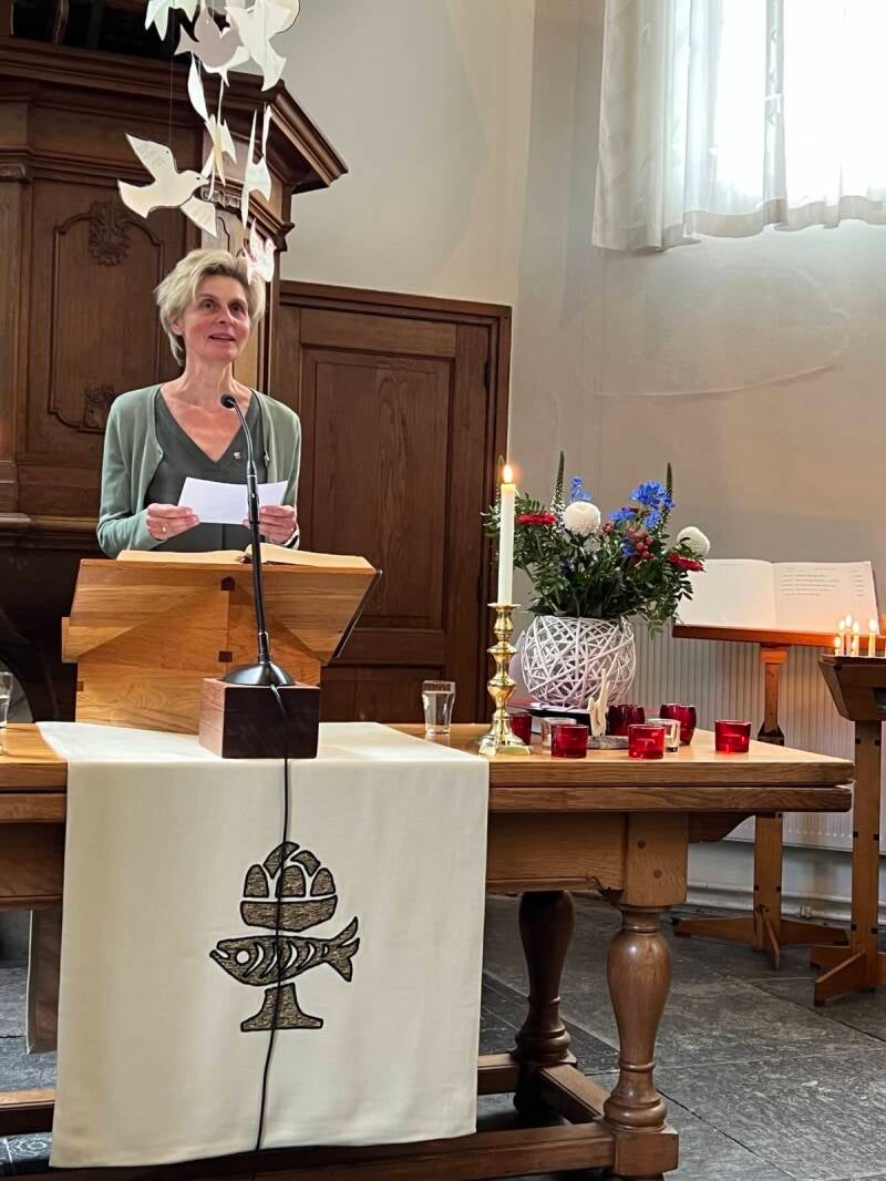 80 jaar Vrijheid – tijdens de herdenkingsdienst op 4 mei in de dorpskerk in Schoorl las Marianne haar gedicht Luister voor en kregen alle bezoekers een setje van onze ‘vrijheidsgedichten’.
